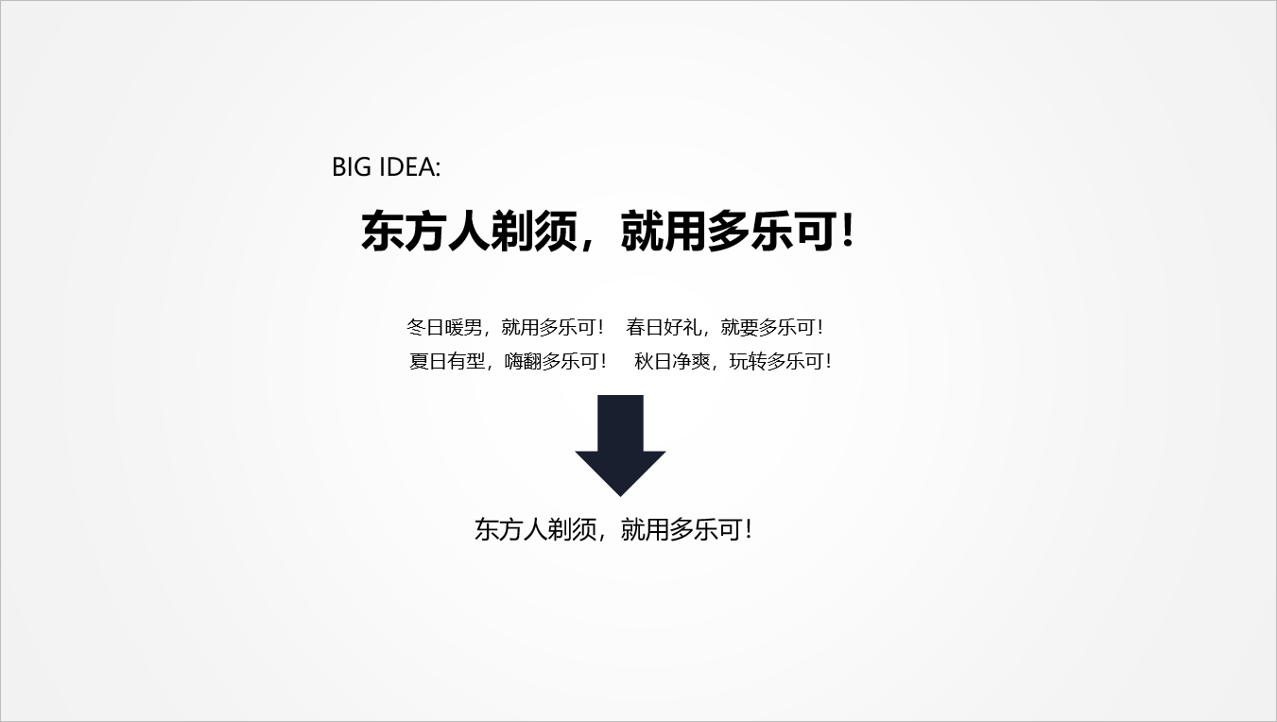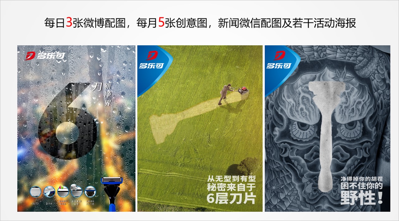 多樂(lè)可品牌本身具有兩大品牌價(jià)值,品質(zhì)承諾,被反復(fù)驗(yàn)證的品質(zhì)質(zhì)量。形象及身份認(rèn)同,生活方式、價(jià)值觀(guān)輸出。其核心資產(chǎn)是高品質(zhì),受到了全球消費(fèi)者的信賴(lài),面對(duì)消費(fèi)升級(jí),提出了好產(chǎn)品,高品質(zhì),我也要買(mǎi)的產(chǎn)品定位,同時(shí)衍生出超級(jí)話(huà)語(yǔ)“東方人就用多樂(lè)可剃須刀”