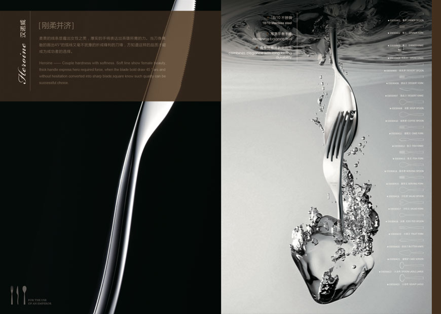柔美的線條顯露出女性之美,厚實(shí)的手柄表達(dá)出英雄所需的力量。當(dāng)?shù)渡砉业禺嫵?/span>45度的弧線又毫不猶豫地折成鋒利的刀鋒,方知這樣的品質(zhì)才能成為成功者的選擇。漢諾威系列主打的就是剛?cè)岵?jì),這讓我們想到了冰與水的對比,一柔一剛,本是一物卻幻化成兩種截然不同的狀態(tài)。