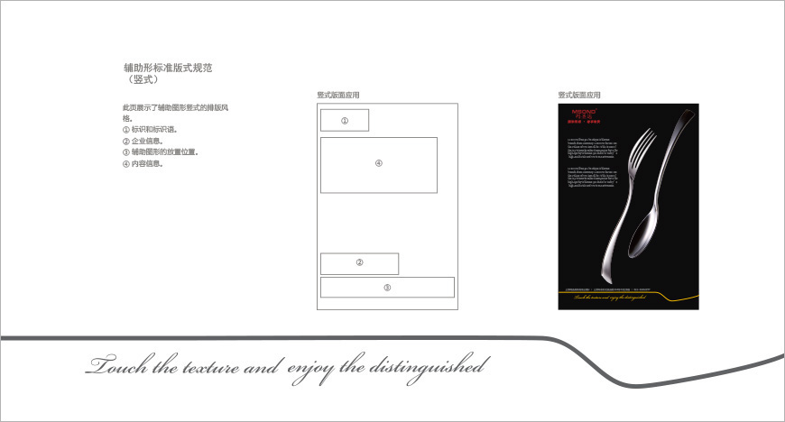 統(tǒng)一品牌的色彩,選擇紅酒的顏色做為品牌標(biāo)準(zhǔn)色,經(jīng)典而富有韻味,值得品味,與品牌的行業(yè)特性相呼應(yīng),提取西餐經(jīng)典餐叉元素,作線性的抽象化設(shè)計(jì),與極具浪漫格調(diào)的英文字體組合成為關(guān)鍵輔助元素,增強(qiáng)品牌的識別性,成為品牌的超級圖形,貫穿在品牌的整個(gè)視覺系統(tǒng)中。