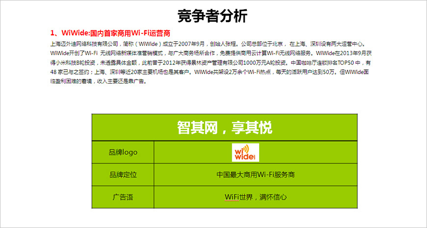 為了做好這個項目,歐賽斯對中國WiFi技術(shù)與行業(yè)進行了詳細(xì)的研究,并對中國WiFi技術(shù)與行業(yè)品牌標(biāo)桿企業(yè)進行了參照分析,項目分析了中國WiFi市場規(guī)模,解析了中國WiFi市場發(fā)展趨勢,洞察了中國WiFi消費人群的需求變化,研究了中國WiFi行業(yè)技術(shù)及商業(yè)模式的發(fā)展趨勢,為寶創(chuàng)科技品牌的定位策劃奠定了堅實的基礎(chǔ)。