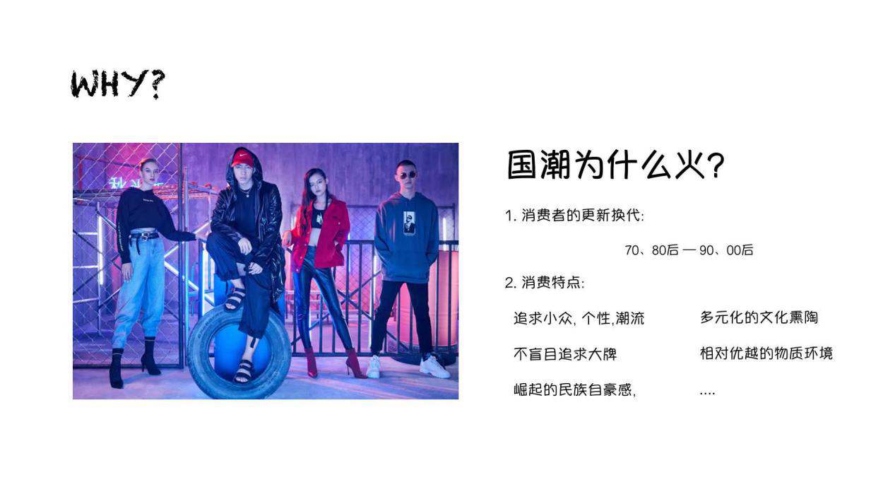 標(biāo)榜自我,追求個(gè)性,愿意不斷嘗新的90后群體已逐漸成為市場(chǎng)的消費(fèi)主力軍;小眾而個(gè)性化的“國(guó)潮"的品牌發(fā)展脈絡(luò)也意味著消費(fèi)者需求和思維觀念的根本轉(zhuǎn)變——即不再局限于對(duì)生活需求的滿(mǎn)足,更是對(duì)某種生活方式和生活意義的滿(mǎn)足;年輕消費(fèi)者對(duì)民族文化的自豪感和強(qiáng)烈的認(rèn)同感悄然崛起。