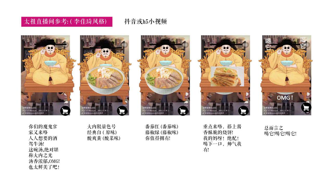 第二步 :宋太祖直播賣(mài)湯直播 H5或抖音(參考李佳琦風(fēng)格)