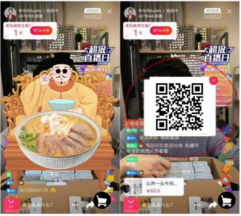 1. 直播間畫(huà)面左下角設(shè)有購(gòu)物車(chē)圖標(biāo) 2.點(diǎn)擊圖標(biāo) 3.跳出趙太祖公眾號(hào)二維碼