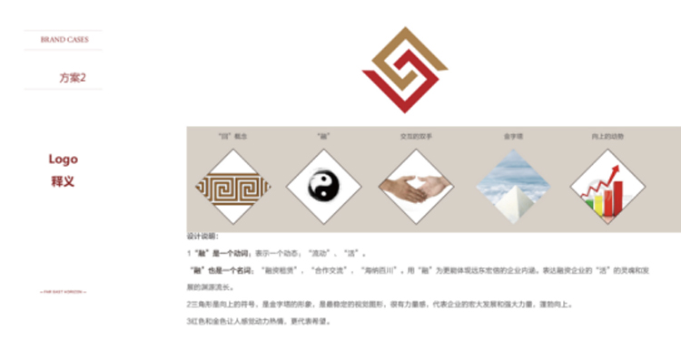 1.“融”是一個動詞:表示一個動態(tài):“流動”“活”;“融”也是一個名詞:“融資租賃”、“合作交流”,“海納百川”。用“融”字更能體現(xiàn)遠東宏信的企業(yè)內(nèi)涵。表達融資企業(yè)的“活”的靈魂和企業(yè)發(fā)展的源遠流長。