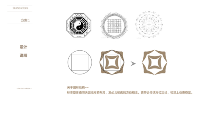 4. 關于圖標結構,標志整體遵照天圓地方的布局,及坐北朝南的方位概念。更符合傳統(tǒng)方位定論,視覺上也更穩(wěn)定。