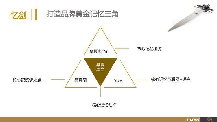 經(jīng)過(guò)對(duì)華夏典當(dāng)行品牌的深度思考,歐賽斯為華夏典當(dāng)行制定了利刃般鋒利的策略和全新的品牌戰(zhàn)略規(guī)劃:九劍平天下。