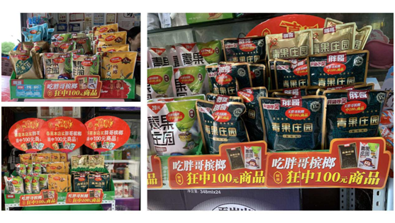 2.放大了購買理由:“開袋尋黃金”、“吃青果王得黃金大獎”、“10包檳榔 6包胖哥”打造了強(qiáng)有力的消費(fèi)者購買理由。