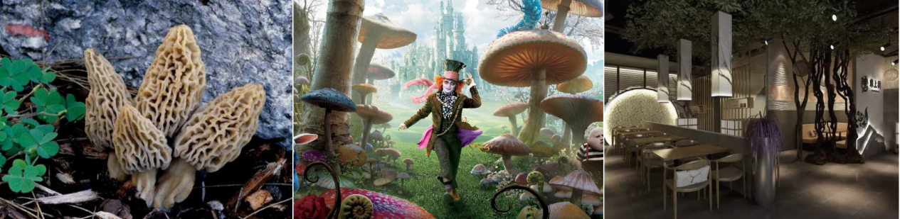 打造完全模擬野生菌菇生長環(huán)境,形成一菇一景的菌菇原生態(tài)野之美。將消費者帶入野生菌菇探險之旅,深入了解野生菌菇,同時體現(xiàn)菇的生活/菇↑生活的野生菌菇品質(zhì)。落葉、菌菇、枯樹根、竹子、泥土、小碎石子、石塊、溪水......