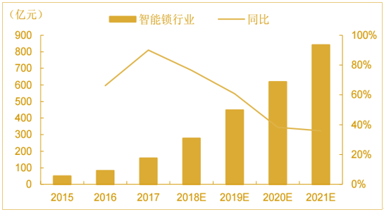 2016年-2018年,智能鎖行業(yè)規(guī)模從83億元猛增至279億元。即使綜合未來(lái)三年預(yù)計(jì),行業(yè)復(fù)合增速也預(yù)計(jì)高達(dá)65.2%。