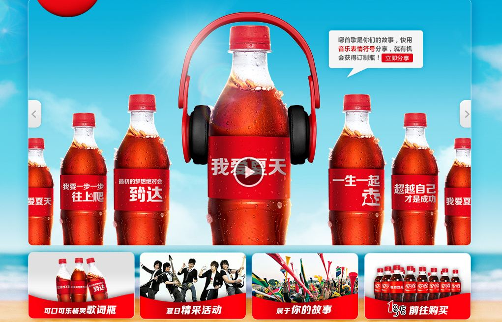 品牌調(diào)性猶如人的個性, 一個人的個性如果總是變來變?nèi)ィ銜o人一種捉摸不透的感覺,讓人無法親近,品牌調(diào)性也是一樣的,如果總是變來變?nèi)ィ銦o法與消費者形成共鳴,長此以久品牌資產(chǎn)便無法積累,慶幸的是可口可樂品牌調(diào)性,經(jīng)久不變。